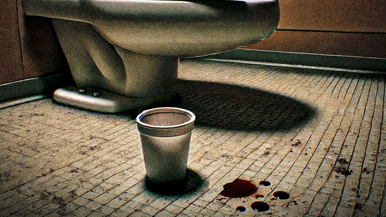 “How’s your day going?” I ask the woman leaving the bathroom stall. She nods and smiles but doesn’t answer my question and, once the tap spits out its pitiful brown stream, she strides out the door. What more can you expect from a public toilet? I hang my backpack on the back of the stall door and slide the lock closed. After placing the cup of water on the toilet lid, I tie my hair back loosely and open the front pocket of my bag. I grab a wad of tissue and raise the toilet seat lid before gently lowering my trousers to just below my knees so they don’t fall to the floor. The seat of my trousers is brown with gelatinous blood. I avoid looking down at the contents of the toilet bowl and I straddle its seat, cupping my right hand and pouring water into it with my left. Delicately, so as not to waste a drop, I bring my hand between my legs and wash myself with the cold water. My breath hitches at the first contact and I shift my weight between each foot, trying not to lose balance and touch anything in here and ruin the cleanliness of the operation. When the cup runs dry, I wring the blood from my fingers with scraps of tissue from the shoddy dispenser, too thin to wrap around my underwear. Reluctantly, I open the front zipper of my bag and grab the three pairs of socks I have. Bringing them to my nose, I try to isolate the smell of the fabric from that of my surroundings to determine which is the cleanest. I line my underwear with the selected sock and lift my trousers so it sits in the right place. I slide open the bolt with my clean hand and, rinsing the other in the sink, try to find some positivity in the fact that I can at least wring the sock out throughout the day. It's the ruthless cramps and swimming vision that can’t be helped.